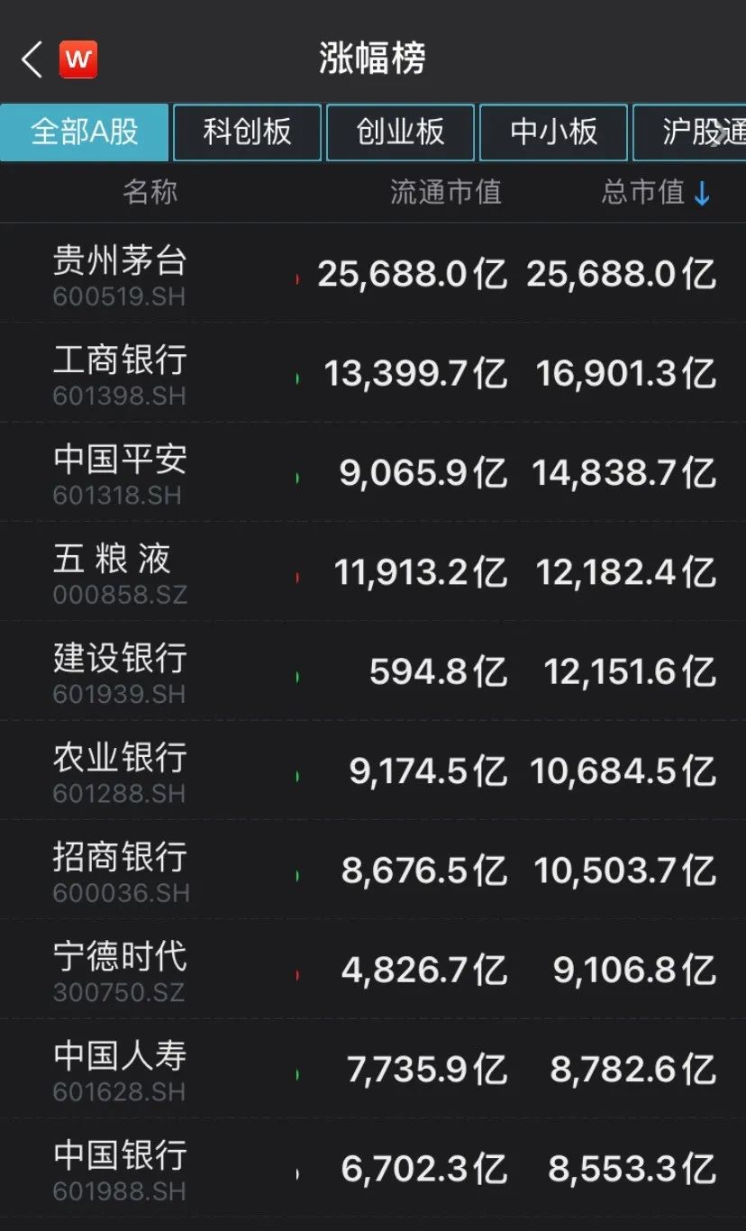 五粮液股价盘中突破300元,一度升至316.5元的历史新高;午间收盘涨5.30%,报313.85元;总市值达1.22万亿元,超越建设银行,位列A股市值榜第四名。
