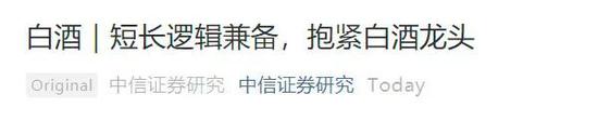 而时隔数日之后,就在今天,中信证券又发表了新观点——“抱紧白酒龙头”!