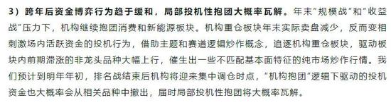 日前,中信证券策略团队发布研报称,岁末年初的多重扰动预计会导致市场局部投机性抱团瓦解。一方面,海外疫情可能冲击部分前期市场博弈的“疫情受损股”修复行情;另一方面,跨年后机构资金博弈行为趋于缓和,局部投机性抱团大概率瓦解。