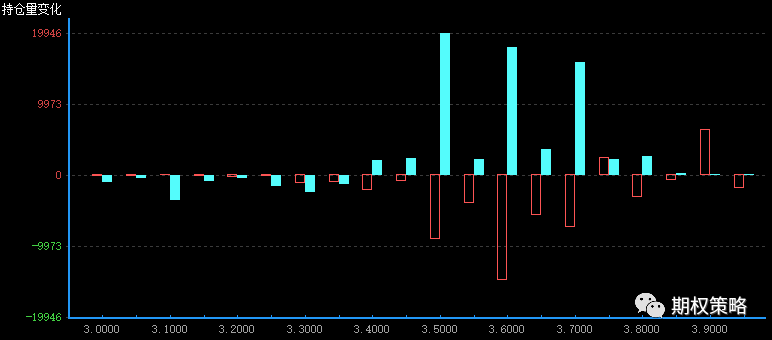 从1月持仓变化来看,认购在3900处增仓最大,认沽在3500处增仓最大,50ETF支撑有上移迹象。