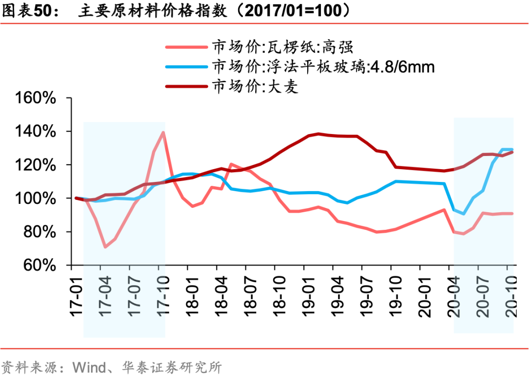 2020年原材料价格上行,大豆、包装物成本上涨压力较大,调味品或将步入涨价窗口期。从原材料价格走势来看,2020年下半年以来大豆价格始终处于高位上行趋势。从包装物价格走势来看,2020年3季度以来PVC及玻璃制品价格指数呈现上行趋势。调味品提价周期约为2-3年,2019年恒顺醋业、天味食品对部分产品进行提价,2020年榨菜缩减包装变相提价。综上,成本压力或将推动产调味品步入提价周期。