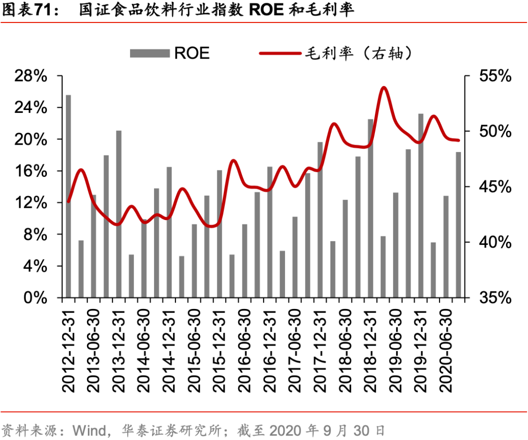 短期业绩展望:20年三季报确认需求加速恢复,从恢复节奏看,20Q3-21Q2四个季度逐季改善的前景是比较明朗的,白酒板块步入业绩驱动期。20Q2终端动销虽有复苏,部分白酒企业控货稳价以帮助经销商消化库存,营收并未出现较高增长,但轻装上阵为后续增长打好基础,Q3以来宴席/餐饮/送礼复苏推动中秋国庆前白酒消费需求增长较快,动销和渠道库存良性,CS白酒板块20Q3营业收入/归母净利润617.5/212.4亿元,同比增长11.5%/13.4%,增速环比20Q2分别大幅提升7.8/7.2pct,我们预计在21Q1(假定疫情不反弹)春节旺季有望延续中秋国庆旺季的表现(出国不畅通、假期集中、国内刺激消费),叠加低基数效应,21H1白酒业绩弹性较高,看好白酒板块业绩逐季改善,有望对当前板块估值形成支撑。
