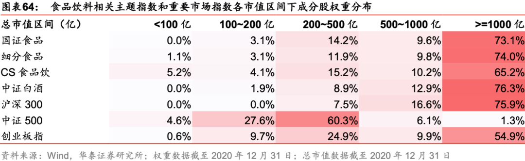 国证食品饮料行业指数在白酒行业权重占比过半,其余细分行业亦有覆盖