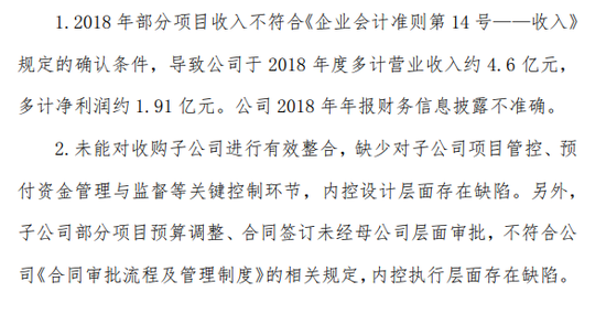 在披露证监会决定对公司立案调查的同时,北京文化还接到了北京证监局警示函。警示函显示,其2018年年报财务信息披露不准确,报告期内部分项目收入不符合《企业会计准则第14号——收入》规定的确认条件,导致公司2018年度多计营业收入约4.6亿元,多计净利润约1.91亿元。这意味着北京文化“举报门”终于迎来了答案——北京文化财务信息确实存在问题。