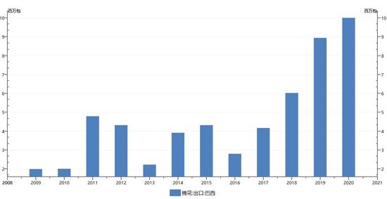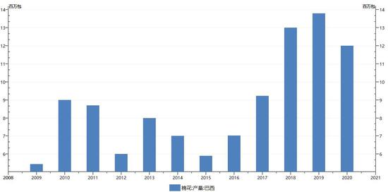 巴西棉农协会预计,2020/21年度巴西棉花产量为240万吨,低于巴西CONAB预测的276万吨,拉尼娜气候带来的干旱使产量难以预测,而玉米价格飞涨也是一大问题。