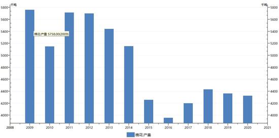 6、2021年植棉意向同比降0.6% 预测总产586.4万吨