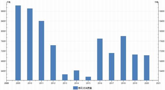 供应方面:按照国内棉花预计产量595.0万吨测算,截至2020年12月18日,全国累计交售籽棉折皮棉580.2万吨,同比增加15.1万吨;累计加工皮棉491.4万吨,同比增加0.1万吨;累计销售皮棉195.5万吨,同比增加27.3万吨。