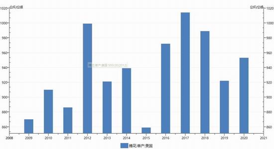 一是内地棉花集约化管理程度低,影响棉农种植积极性,植棉意向普遍下降;二是新疆籽棉收购价格同比上涨。据国家棉花市场监测系统数据显示,截至2020年11月30日,2020年度新疆籽棉收购均价较去年同期提高16%。加上新疆棉花目标价格补贴政策的支撑,使新疆棉农植棉积极性稳中有升。