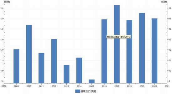 根据美国农业参赞的预测,乌兹别克斯坦国内消费量将快速增长,出口供应量将明显受限。2019/20年度棉花出口量预计为6.3万吨,2020/21年度棉花出口量预计为5万吨。2019/20年度,中国进口乌棉13014吨,同比减少84%。2020/21年度前两个月,中国没有进口乌棉。