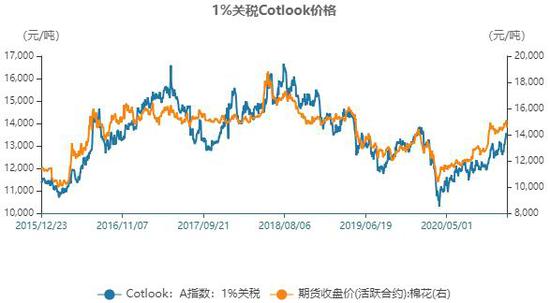 澳棉报价为93.42,折人民币一般贸易港口提货价15073.16元/吨。