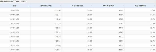 国际棉花咨询委员会(ICAC)发布的12月份全球产需预测报告认为,2020/21年度全球棉花产量下降将使期末库存上升的压力减轻。根据报告,2020/21年度全球棉花产量调减至2470万吨,消费量仍为2430万吨,但考虑到许多国家进入新一轮封锁,因此消费量预测仍要根据疫情的变化进行调整。全球棉花进口量调增到940万吨,期末库存为2170万吨,给棉花价格带来的压力有所减轻。