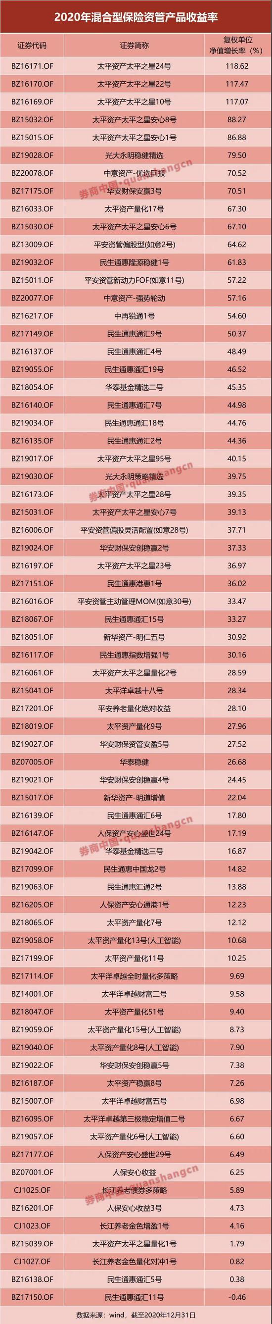从具体产品业绩看, 2020年共有25只股票型保险资管产品收益率超过50%,2只产品收益率超过100%。