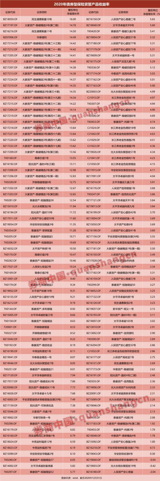 此外,大家资产稳健精选系列、华泰资产、阳光资产、泰康资产、光大永明资产、人保资产、华安财保的多个债券类产品,去年收益率也达到10%以上。