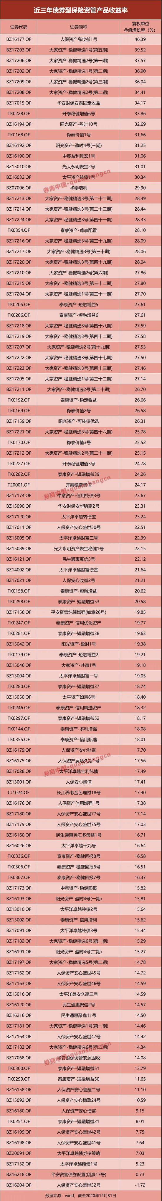 若将时间拉长到3年,则收益率最高的债券型产品是人保资产高收益1号,这是人保资产2016年11月18日成立的产品,其自2018到2020年的3年收益率达到46%。