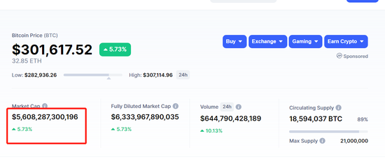 比特币最新市值5.6万亿港元,超越腾讯控股的5.5万亿港元。