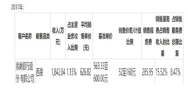 不过,这一自称稳健的治理结构却被一家供应商上市信息的披露露出了一些可疑的痕迹。据南山智尚《审核中心意见落实函之回复》显示,公司2017年对徽商银行销售1842.84万元的西装中,给予第三方销售服务费高达285.95万元,占销售总额比为15.52%。对此,创业板上市审核委员会对上述服务费用支付的合理性提出了质疑,询问是否存在代理商向客户支付货款的情况,是否存在商业贿赂的情况。