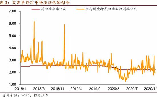 永煤事件后,资金利率一直处于比较宽松的状态。但我们认为这并不代表央行的态度转向,更可能的是对冲永煤违约对市场流动性的影响。回溯过去两年,银行间质押回购加权利率一共有3个时段显著低于逆回购利率,而这三个时段都是有突发事件发生,分别是2019年6-7月的包商事件、2020年2-4月的新冠疫情和2020年11-12月的永煤事件。当突发事态缓解后,货币市场加权利率均会有回归。