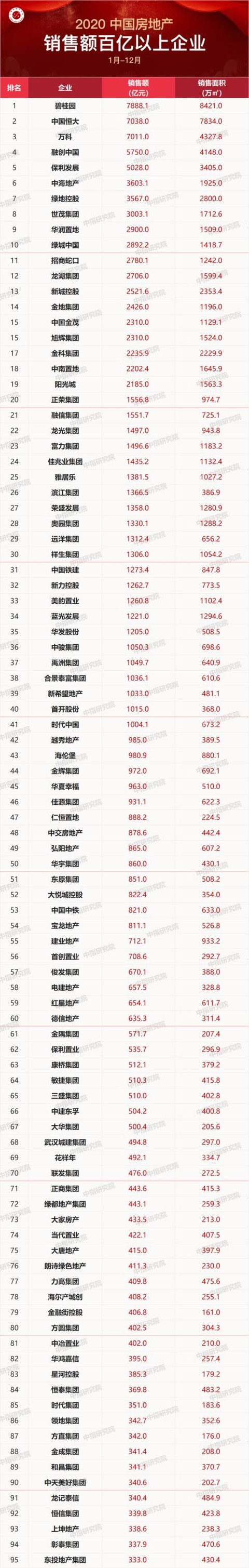 原标题:最新排名!2020房企销售百亿榜单新增14家 碧桂园蝉联冠军