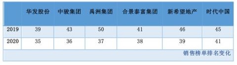 值得注意的是,2020年这六家千亿房企的排名也发生了显著变化(具体统计见下图)。