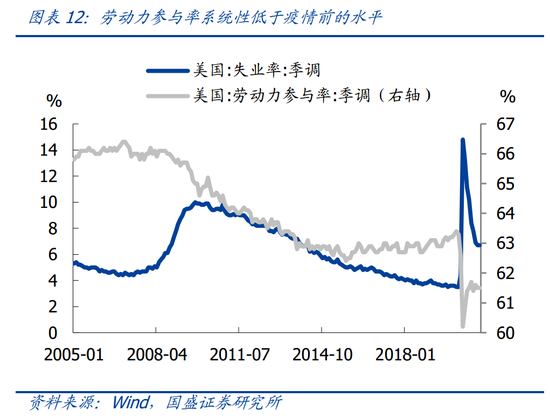 综合来看,由于联储加强了预期引导,因而难以出现类似2013年缩减恐慌。目前美国经济复苏基础尚不稳固,而2013-2014年经济稳步向上,当前需要联储货币政策保持宽松,以维持利率在较低水平。当前的通胀总体水平也低于2013-2014年,并且联储采取平均通胀目标制,即使后续通胀回升至2%以上,联储货币政策也不着急收紧。而美国目前的劳动力参与率已经系统性的降低,失业率总体水平也不低,劳动力市场并不强劲,这也不支持联储收紧货币政策。