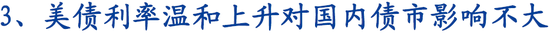 中美利差处于历史高位附近,美债利率温和上行对国债债市影响有限。目前中美利差为230bps,处于历史高位附近。即使美债利率上行,假设上行至1.5%,则中国利差依然有180bps左右,也处于高位。中国债市收益率仍具有绝对吸引力,从而支撑外资继续流入中国债市。