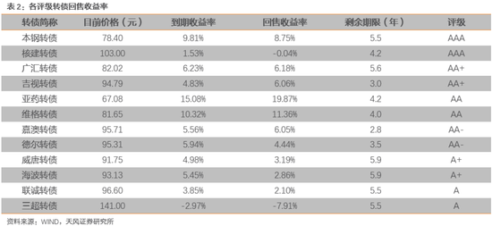 本周各评级可转债按回售收益率排行的情况如下: