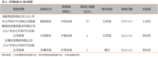 本周私募EB项目进度更新如下表所示: