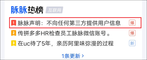同日,脉脉在各大平台发表声明,表示他们会保护用户信息安全,不会外泄。