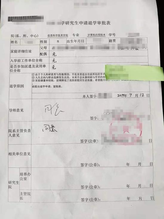 2019年9月开学后不久,王阳向导师正式递交了退学申请。那已经是他读博的第五年。