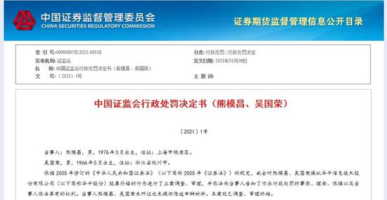 综上,对熊模昌给予警告,合计处以205万元罚款,对吴国荣给予警告,合计处以185万元罚款。