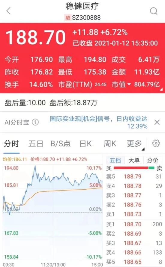 随着该事件的持续发酵,全棉时代母公司稳健医疗(300888)也受到影响。1月7日收盘,稳健医疗股价下跌3.94%,随后下跌幅度不明显。1月12日,稳健医疗股价开始回升。截至下午收盘,股价报188.70元/股,上涨6.72%,总市值达804.79亿元。