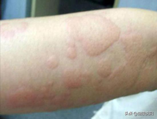 荨麻疹的皮疹特点为大小不等、形态各异的鲜红色或苍白色或皮肤色风团,发作时间不定,24小时内可自形消退,消退后不留痕迹,皮疹反复发作,时起时落,以夜间发作者较多。如果消化道受累,可出现恶心、呕吐、腹痛、腹泻等症状;支气管和喉头受累,则出现咽喉发堵、胸闷、气促、呼吸困难,甚至窒息而危及生命。