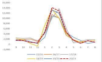 2020年的拉尼娜气象无疑给资金较大想象空间,但从绝对库存以及盘面走势来看,本轮上涨并未充分反应南美的减产预期,转而言之,干旱仍给予市场想象空间。不过从最近的气象模型结果来看,拉尼娜似乎已接近峰值,南美种植期天气状况也一直没有出现太大问题,资金减仓也引发遐想。虽然USDA最近几个月持续下调阿根廷作物产量,但在2020年压榨产能逐步向巴西转接的情况下,无论对于贸易量供应量都是相对有限的。相比之下,巴西在天气加持下,种植的持续推进,丰产概率较大。因而我们认为当前实际面临着低库存与丰产预期背离。