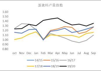 整体来看,2020年美豆粕消费向好与玉米制生物燃料的下滑不无关系,数据显示,截止本周,2020年美国玉米制生物乙醇产量同比降约12%,主要因疫情影响下国际原油消费走弱有关,期间美国生物制乙醇利润一度出现大幅下跌。而伴生品DDGS产量在美国蛋白消费中同样扮演着比较重要的角色,受此影响,美豆粕消费整体出现了较大增长。USDA对20/21年度玉米制生物乙醇量上调仍然偏保守,同比增幅仅4%,就此来看,20/21年度美豆粕消费预计仍维持较乐观态度。