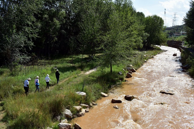 2020年8月25日,生态环境部组织的黄河流域入河排污口排查海东市第2组在湟水河排查。摄影/章轲