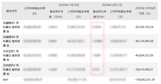 直到2020年1月4日,私募管理人方才将截至2020年12月31日的基金净值表放松至中来股份,四只基金净值均较2020年11月30日出现急剧下降,泓盛腾龙4 号与方际正帆1 号更是跌至负值,也就是上述基金使用了杠杆。2020年12月当月亏损1.587亿元,较2020年11月亏损幅度为97.18%。