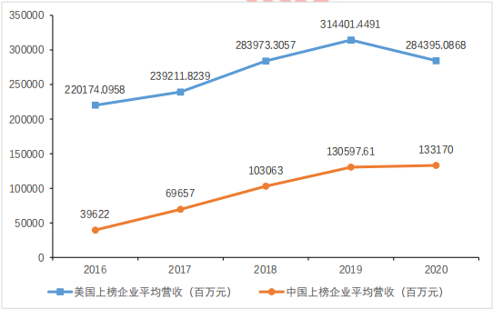 一是我国上榜企业营业收入低于美国。2020年世界500强我国上榜企业平均营业收入为656.78亿美元,美国为810.44亿美元。