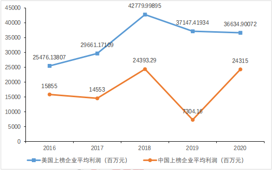 图 2-8 《财富》中、美 500 强中美企业盈利对比