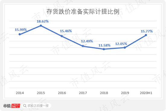 这导致公司近几年的存货中库存商品占比最高,约为九成。2014年、2015年女装业务萎缩时朗姿股份的服装成品积压库存增多,存货跌价准备计提比例一直曾一度高达18.62%。