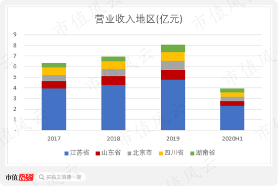 (2)营业收入地区特征明显,规模较大的医美上市公司目前也只是在国内不同地区各自称雄。