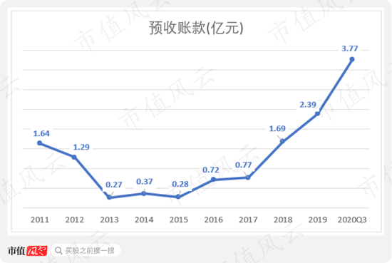 从下表不难看出,2018年陕西高一生收购完成后,朗姿股份的预收账款期末余额随即大幅增加。2020年9月末,朗姿股份的预收账款余额为3.77亿元。