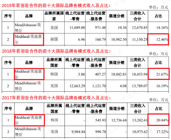 另外,从以下数据看,若羽臣也是美迪惠尔(L&P)在国内重要的电商渠道分销商。