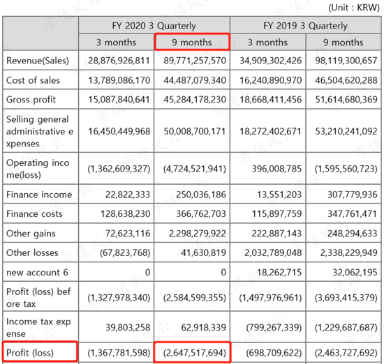 (阿卡邦2020年三季报主要利润表数据,单位为千韩元)