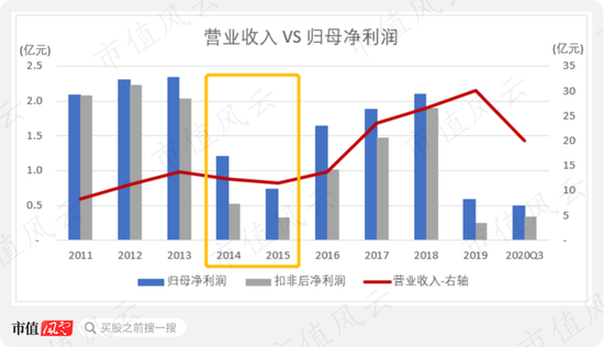 其中,2014年、2015年朗姿股份连续两年营业收入、净利润双双下滑。