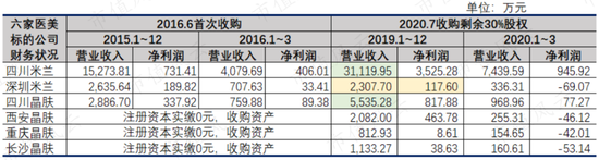从第二回收购时六家医美标的的财务情况看,深圳米兰2019年的营业状况反而不如2015年,六家标的公司的业绩增长主要来自四川地区。