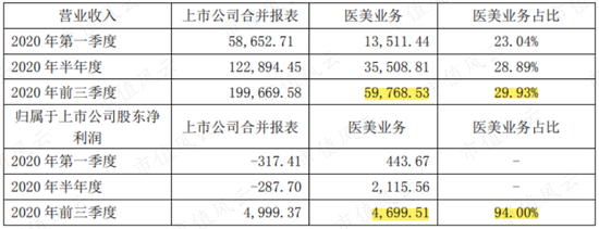 也就是说,女装业务、绿色婴童业务在2020年前三季度创利甚微,医美业务成为了“顶梁柱”业务。