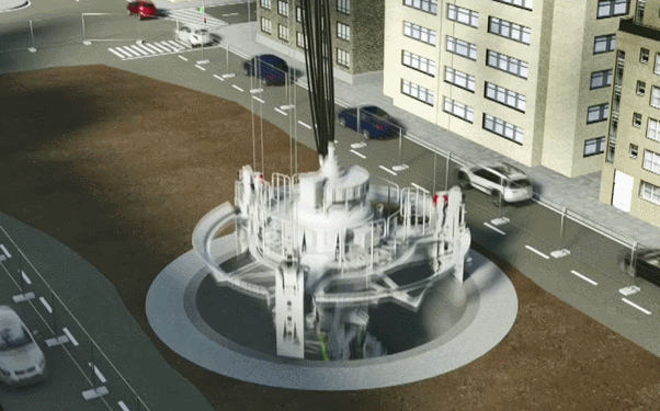 目前,南京市儿童医院河西分院旁正在建设国内首个“垂直盾构技术沉井式车库”项目,该项目由隧道股份上海路桥承建。一期工程总建筑面积1196.87平米,将建设两座沉井式地下智能停车库。沉井深度68米,沉井内径12米,每口井有小型车停车位72个,SUV车型停车位28个,两个沉井式车库总计可停车200辆,把传统的“二维”停车空间转为“三维”立体空间。