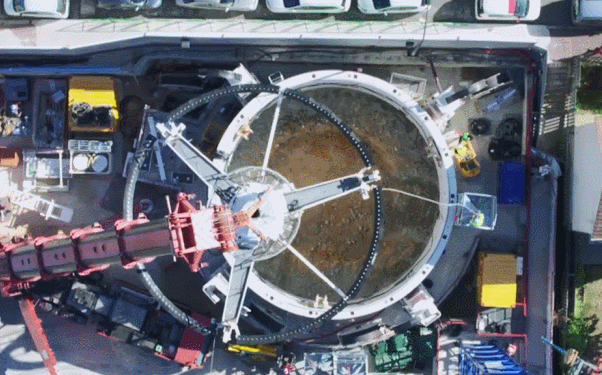这项工程应用了目前全球最先进的德国海瑞克VSM下沉式竖井掘进技术,这也是国内首次采用12米直径垂直竖井掘进技术,开挖速度快、占地面积小,可以在施工中保持低排放、低噪音,适用于多种复杂地层,对周围建筑几乎没有影响。竖井挖掘完成后,井筒及停车设备80%采取装配式建筑模式,实现绿色施工、安全施工和无人自动作业,单井建设从开工到竣工使用,最快仅需半年。
