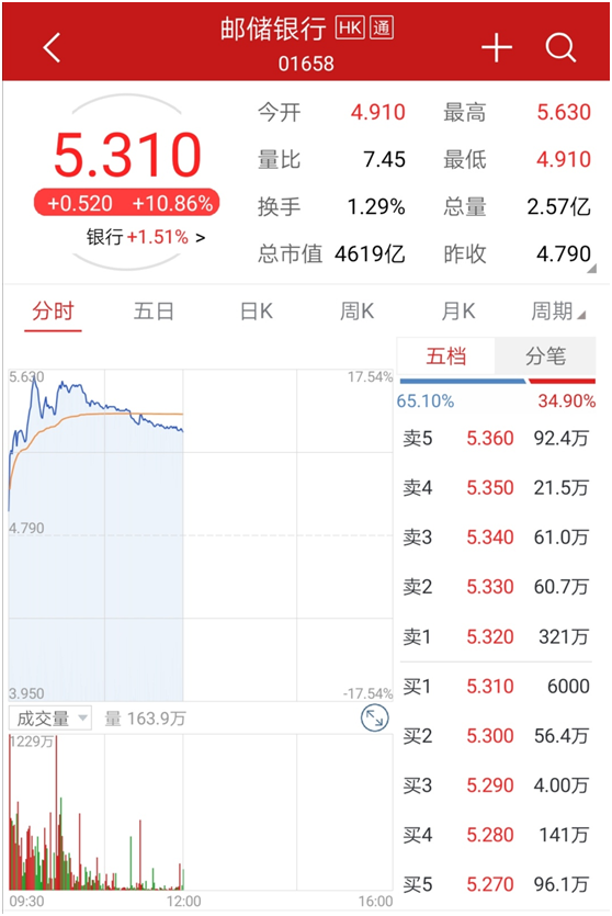 这其中,获得李录加仓的邮储银行直线涨停,作为一只大型银行股,如此强势涨停较为罕见。邮储银行H股亦上涨10.86%,盘中涨幅一度超过17%。
