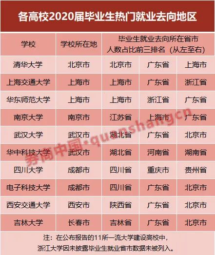 数据来源:各高校2020年就业质量报告表格整理:贺觉渊